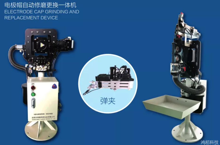 該產(chǎn)品是一款點焊機電極帽的修磨和自動更換設備,具有結(jié)構(gòu)簡單,操作方便,效率高,質(zhì)量可靠等諸多優(yōu)點。該產(chǎn)品采用伺服電機精確控制修磨過程,能實現(xiàn)電流檢測和異常反饋功能;采用硬質(zhì)合金涂層刀片,可實現(xiàn)高轉(zhuǎn)速修磨,能對點焊鉗上下電極的電極帽同時修磨,修磨后的電極端面可保證同心吻合;對于完全報廢的電極帽,該產(chǎn)品可實現(xiàn)自動拆卸并更換全新電極帽。